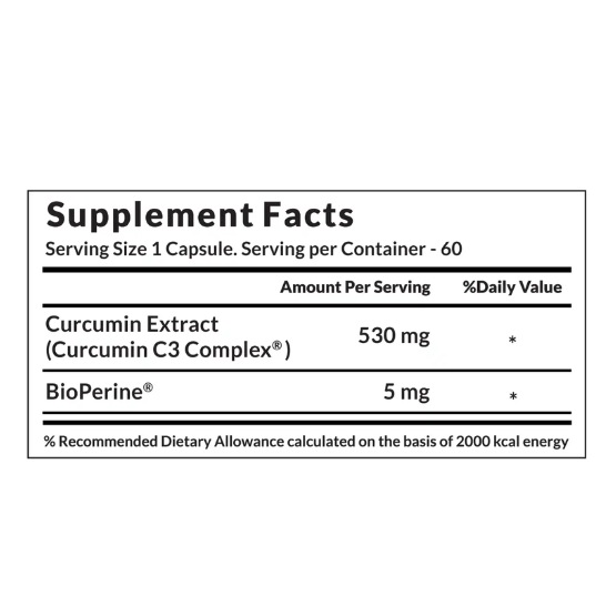 C3 Complex (3 curcuminoids) + Bioperine; superior bioavailability anti-inflammatory, antioxidant, joint and liver support