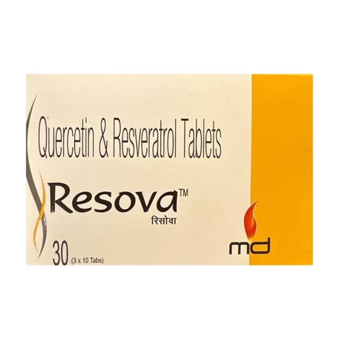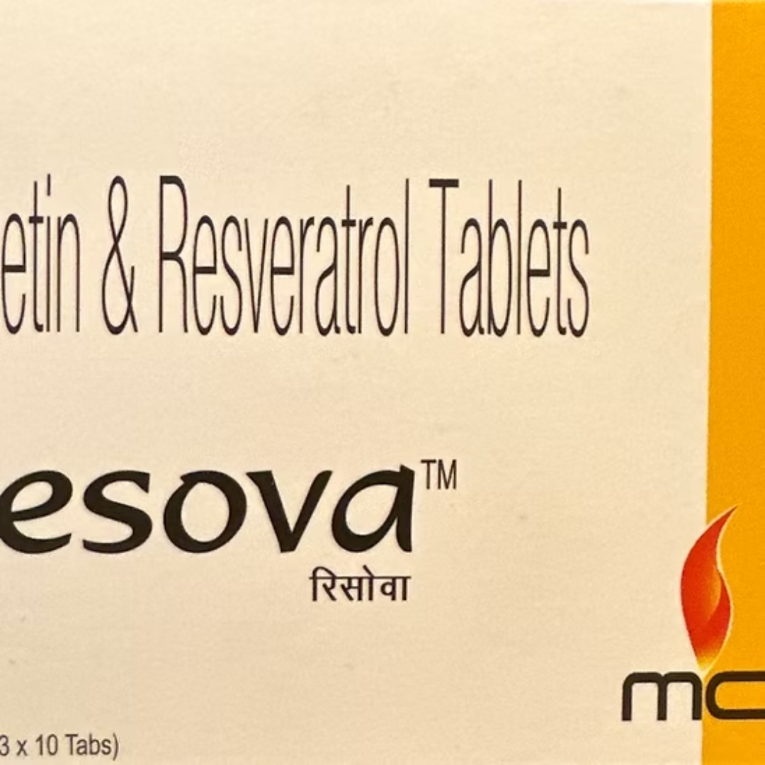 Resova provides Trans-Resveratrol — the stilbene polyphenol from grape skins — in a bioavailable form with potent SIRT1-activating, anti-ageing, and cardioprotective properties. Resveratrol activates the same sirtuin pathways that extend healthy lifespan, reduces LDL oxidation, inhibits platelet aggregation, suppresses NF-kB inflammatory signalling, and crosses the blood-brain barrier to protect neurons. The longevity molecule of the Mediterranean — available in a capsule.